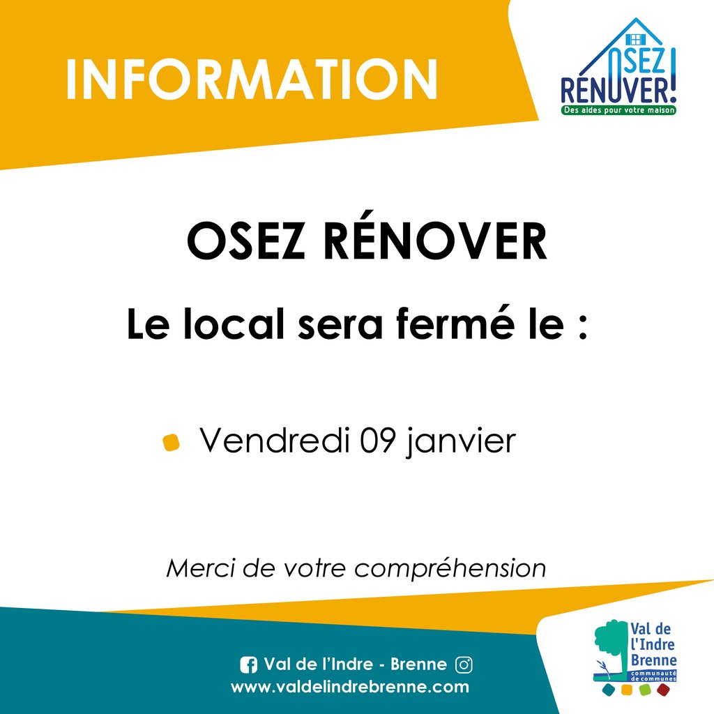 Le local Osez Rénover sera fermé le vendredi 9 janvier 2026.