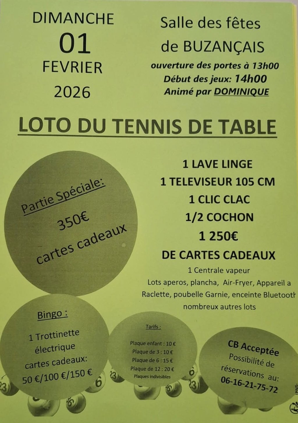 Loto du tennis de table de Buzançais