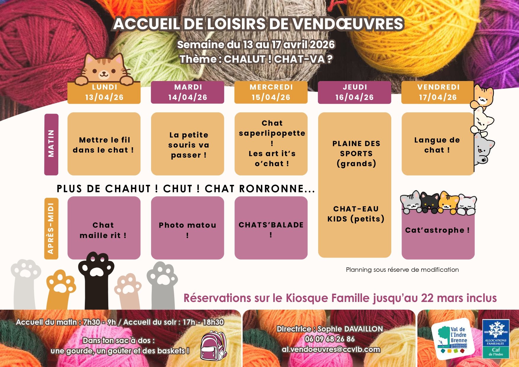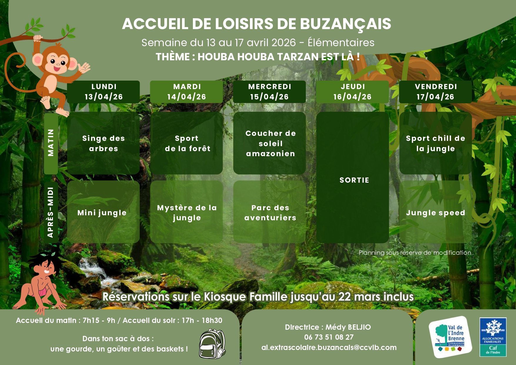 Pour toute information sur les inscriptions : 02 54 26 91 11 ou accueil@ccvib.com