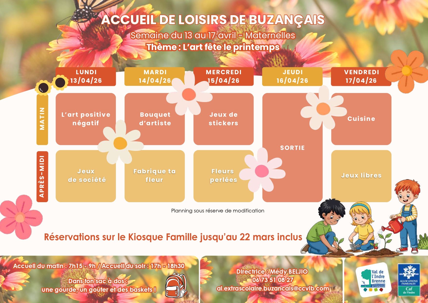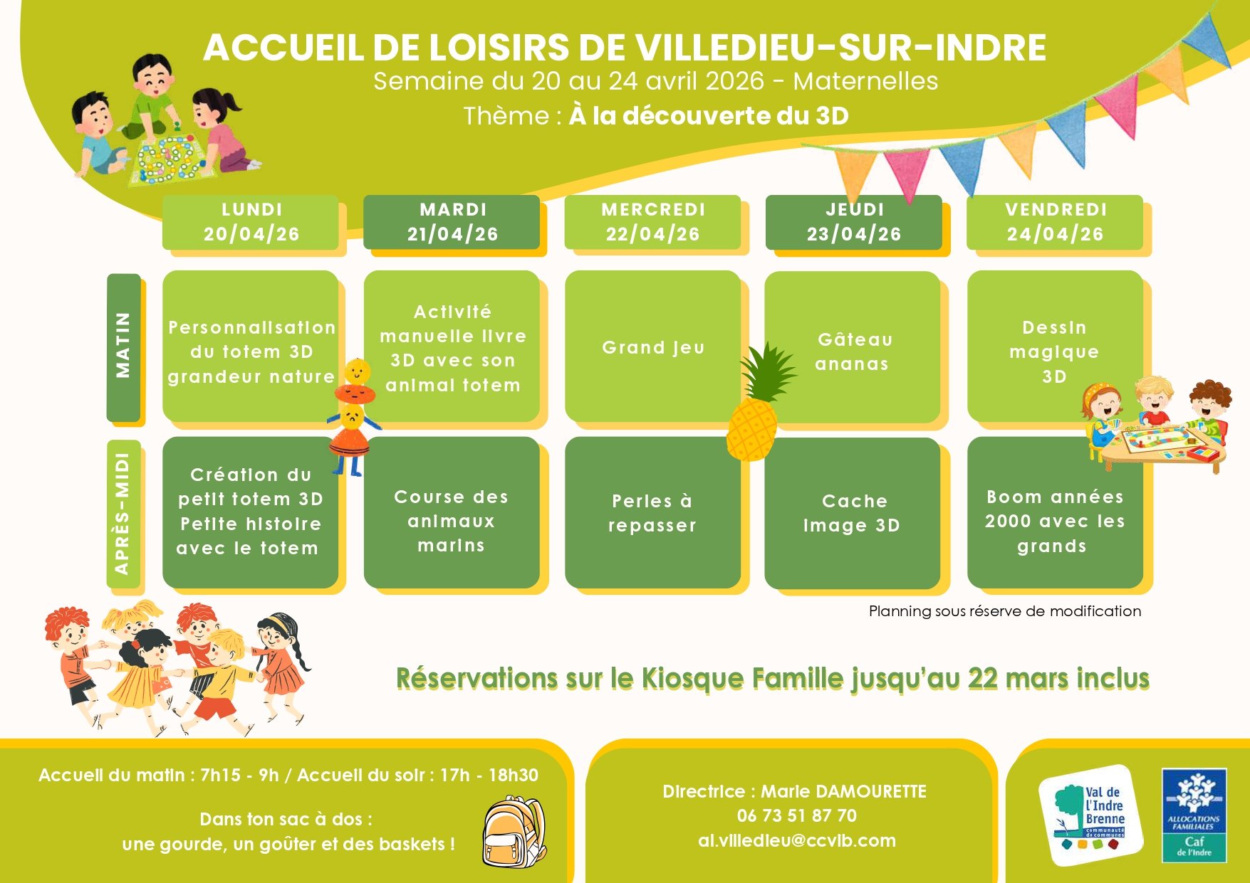 Plannings vacances maternelles