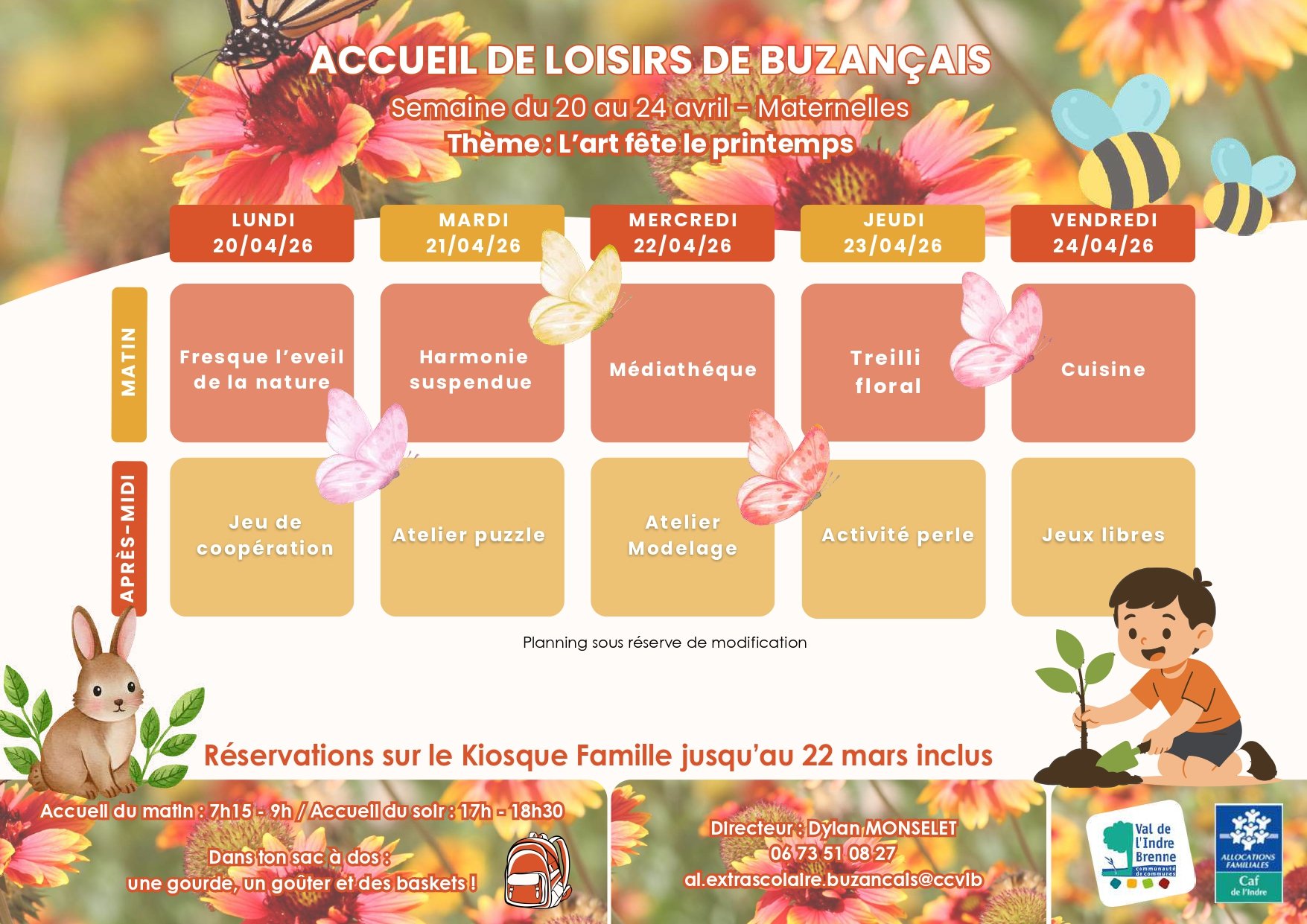Toutes les inscriptions se font sur le Kiosque Famille https://valdelindrebrenne.kiosquefamille.fr/