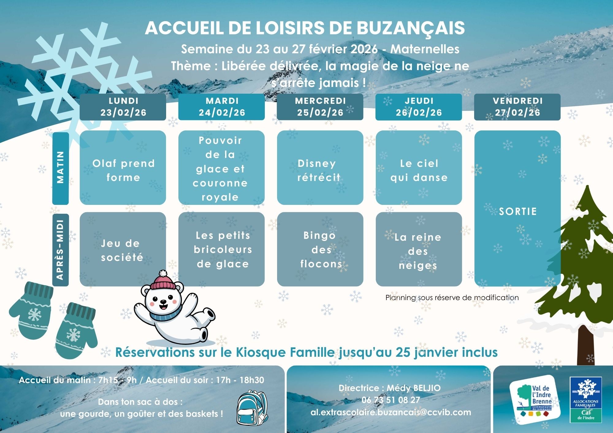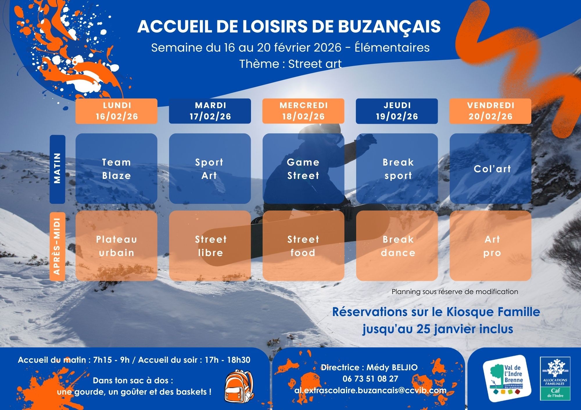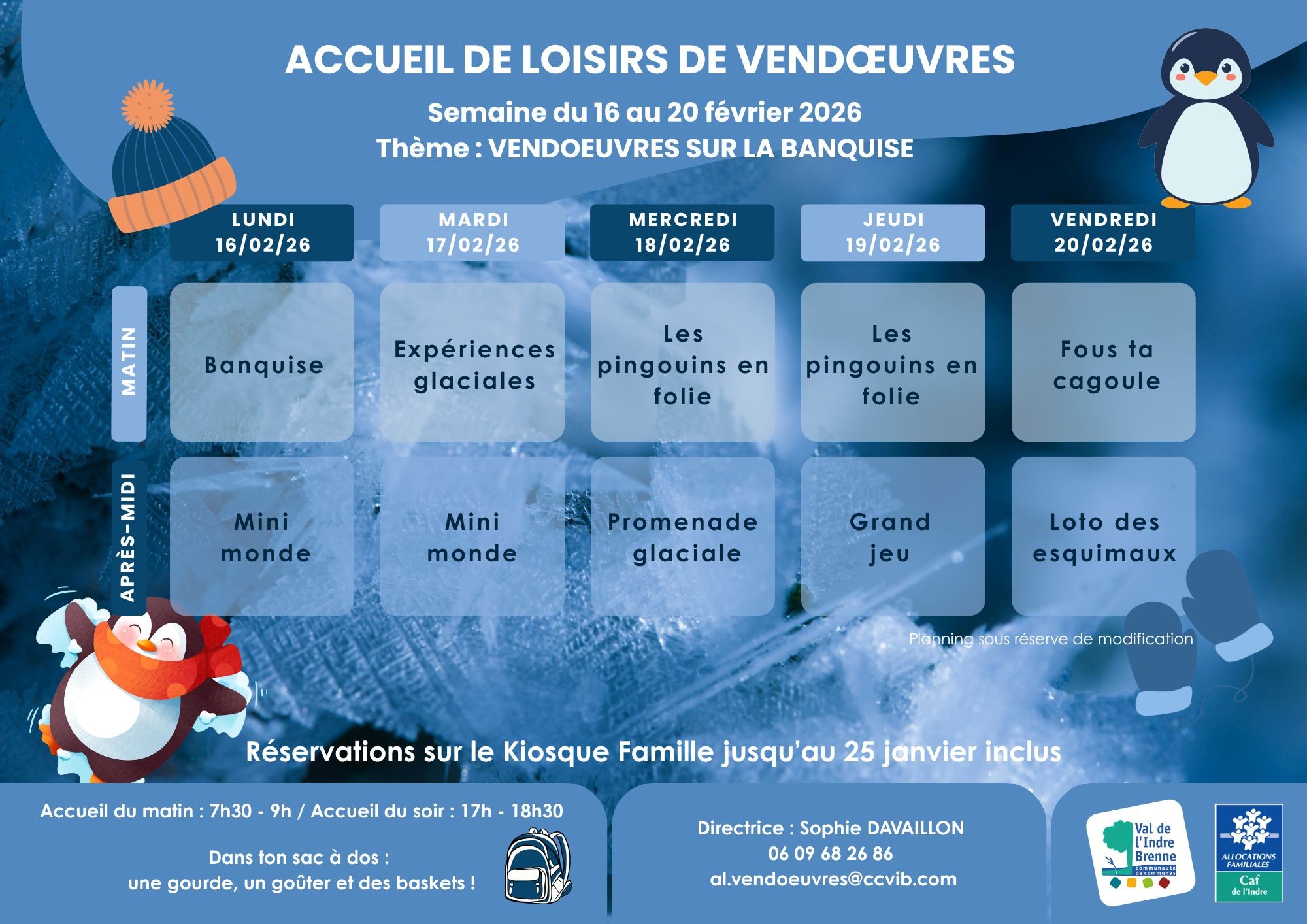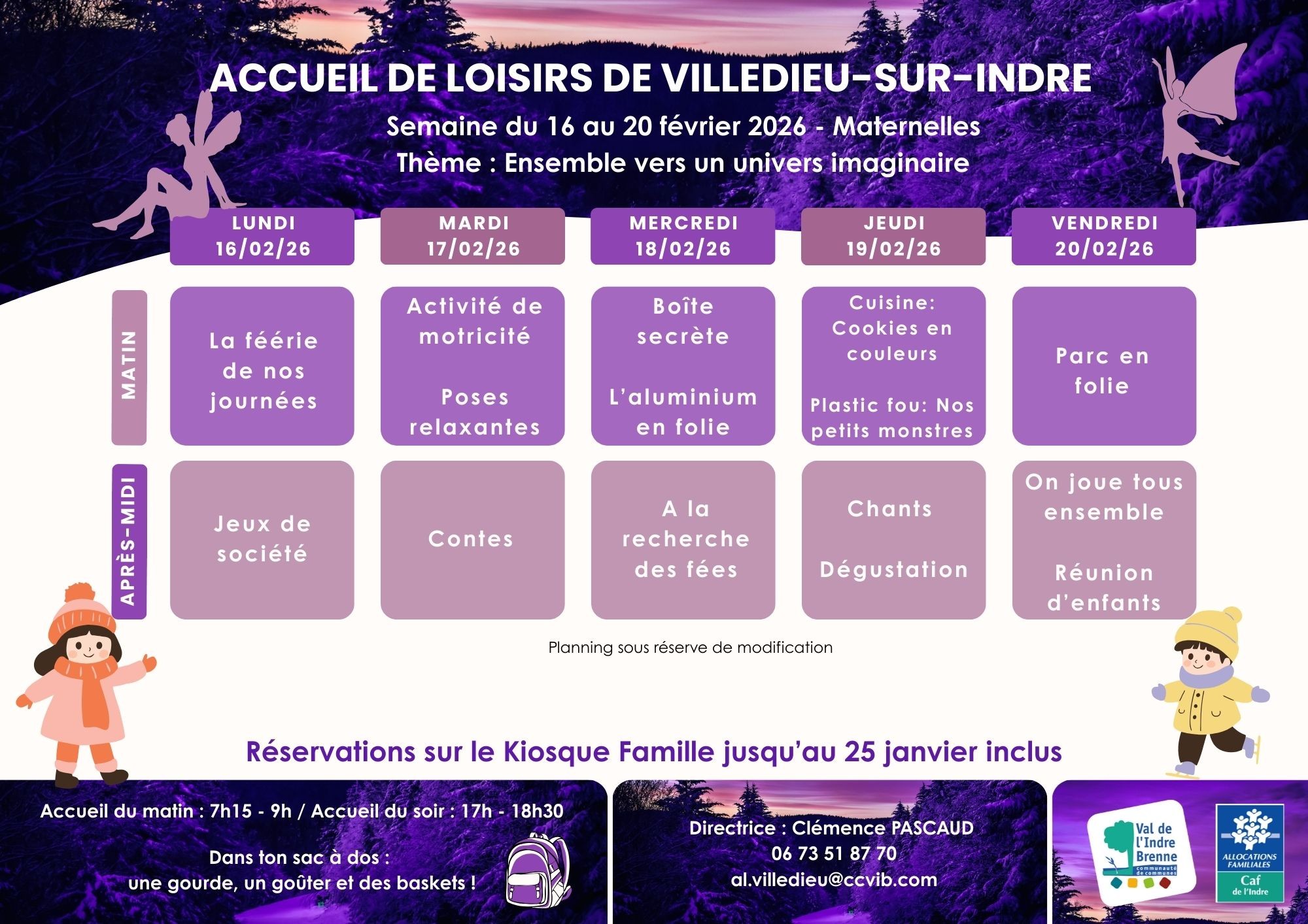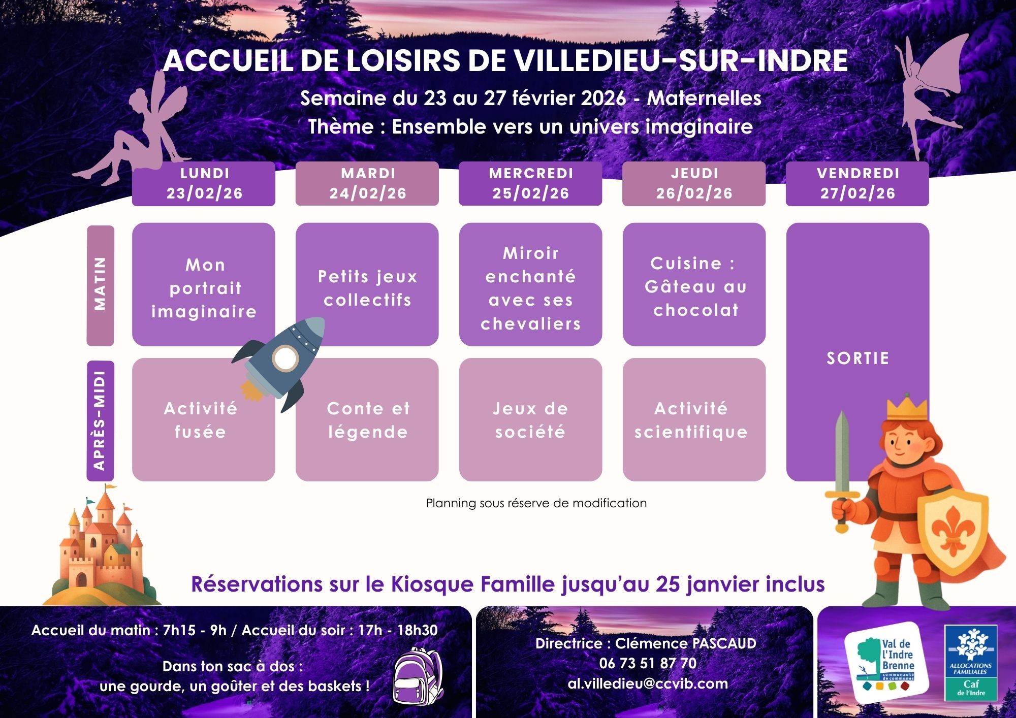 Les plannings des vacances de printemps seront disponibles courant mars. Les inscriptions seront à réaliser jusqu'au 22 mars.